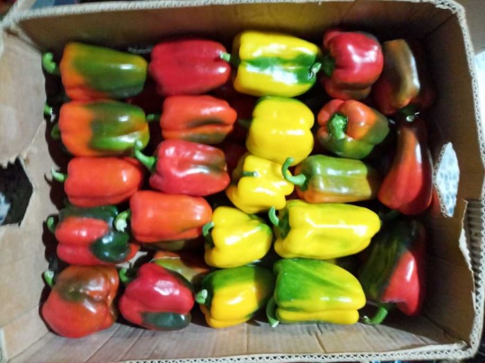 فلفل دلمه ای در سه رنگ قرمز نارنجی زرد با بسته بندی مناسب در ضمن انواع فلفل درجه خودم خریدارم